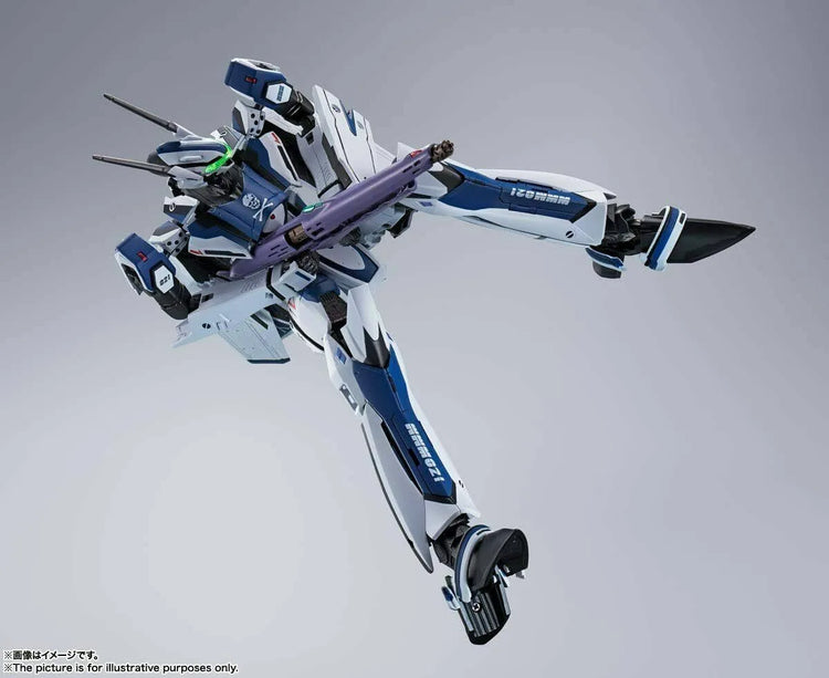 This special item celebrating the anniversary of the Macross series is a uniquely colored edition of the VF-25 featuring a blue-hued Messiah color scheme.