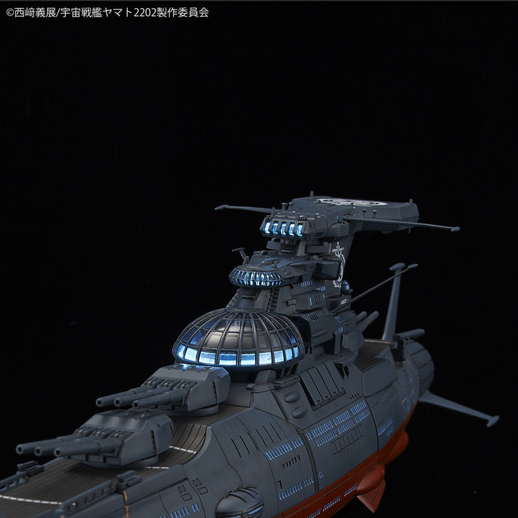 The sister ship of the Yamato, the Ginga, from “Yamato 2202” gets a 1/1000-scale model kit release from Bandai! The Ship of Transcendental Dimension closely resembles the Yamato, although she boasts differently shaped window frames and some hull details, as well as an observation dome. Clear parts are included to reproduce the distinctive observation dome and bridge, and an LED unit is included to light up the observation dome! Parts for the sealed Wave Motion Gun are included, and if you install an optional LED light (not included, sold separately), you can illuminate it as if it’s preparing to fire! Decals are included for the Earth Federation Army markings, too. In-scale space attack craft (Cosmo Zero, Cosmo Tiger II) are also included.