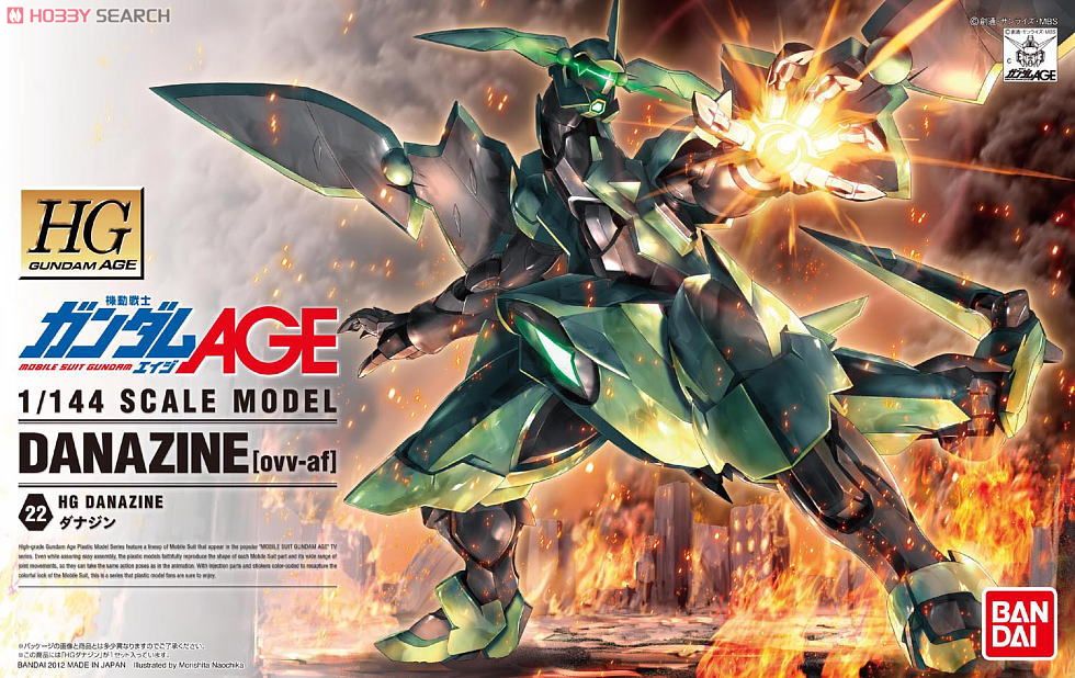 Similar in design to the Gafran and Zedas (linked below) the Danazine takes the dragon-like designs of the Gundam AGE suits a step further. With its articulated wings and tail the Danazine can pose like no other Gundam. - Features an impressive movable tail. - Accessories: Grip Manipulator (Left, Right), Open Palm (Left, Right) Release Date: May 2012 Scale: 1/144 Item Size/Weight: 29.8cm x 19.0cm x 6.8cm / 300g Release Date: May 2012
