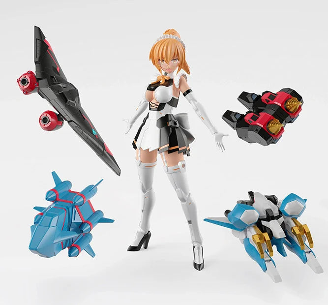 After transforming from Phantom Gao to GaoFar, GaoFighGar can then be formed by fusing with the three types of GaoMachines. These many features from the series are now recreated in mecha girl form. Fans can now recreate the impressive Fusion scenes from the series. The model can also be recreated in maid girl form without the mecha parts.