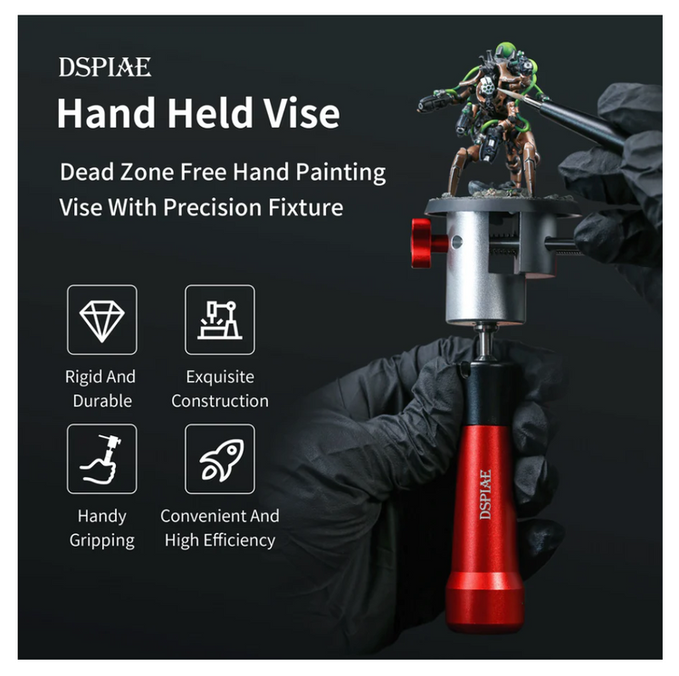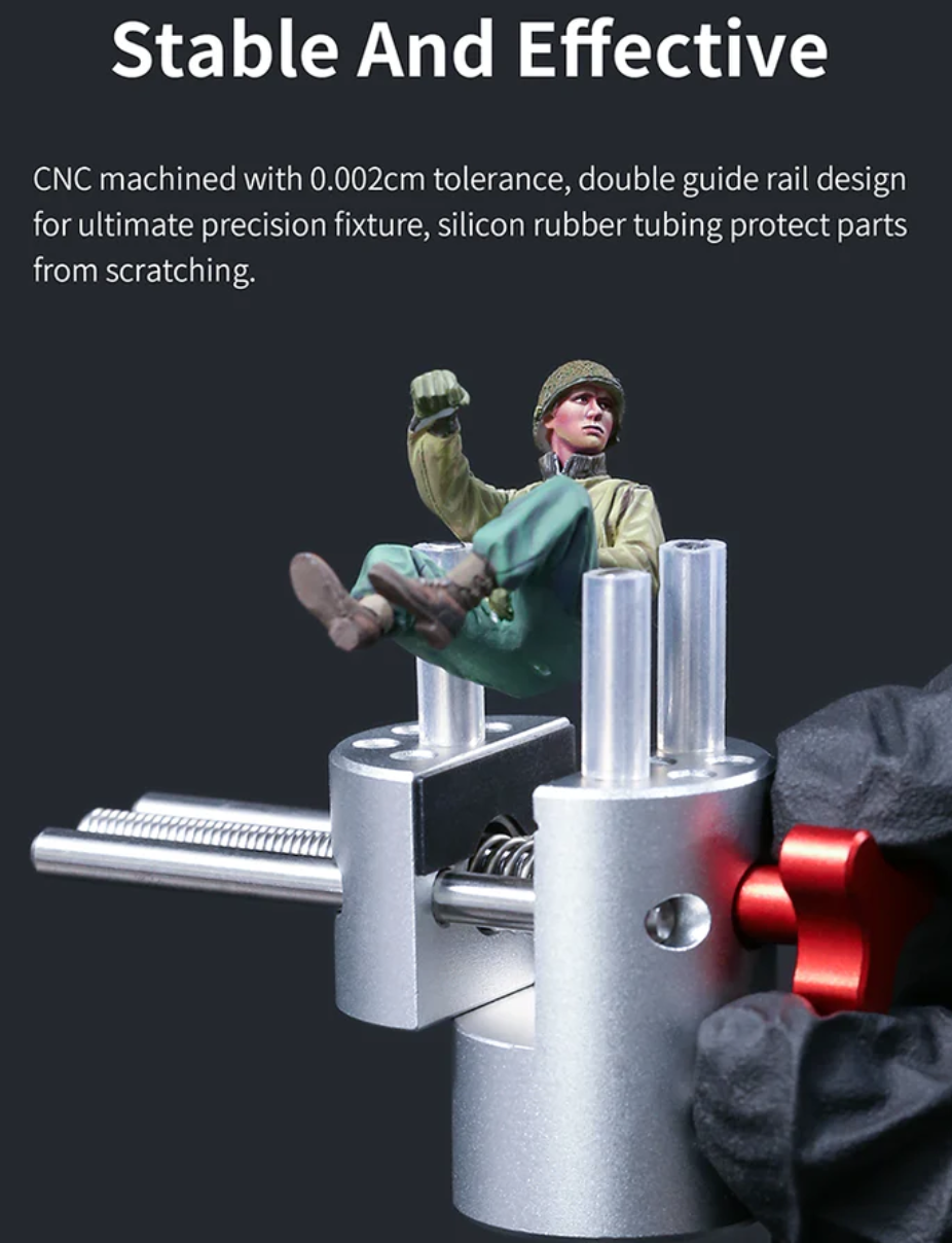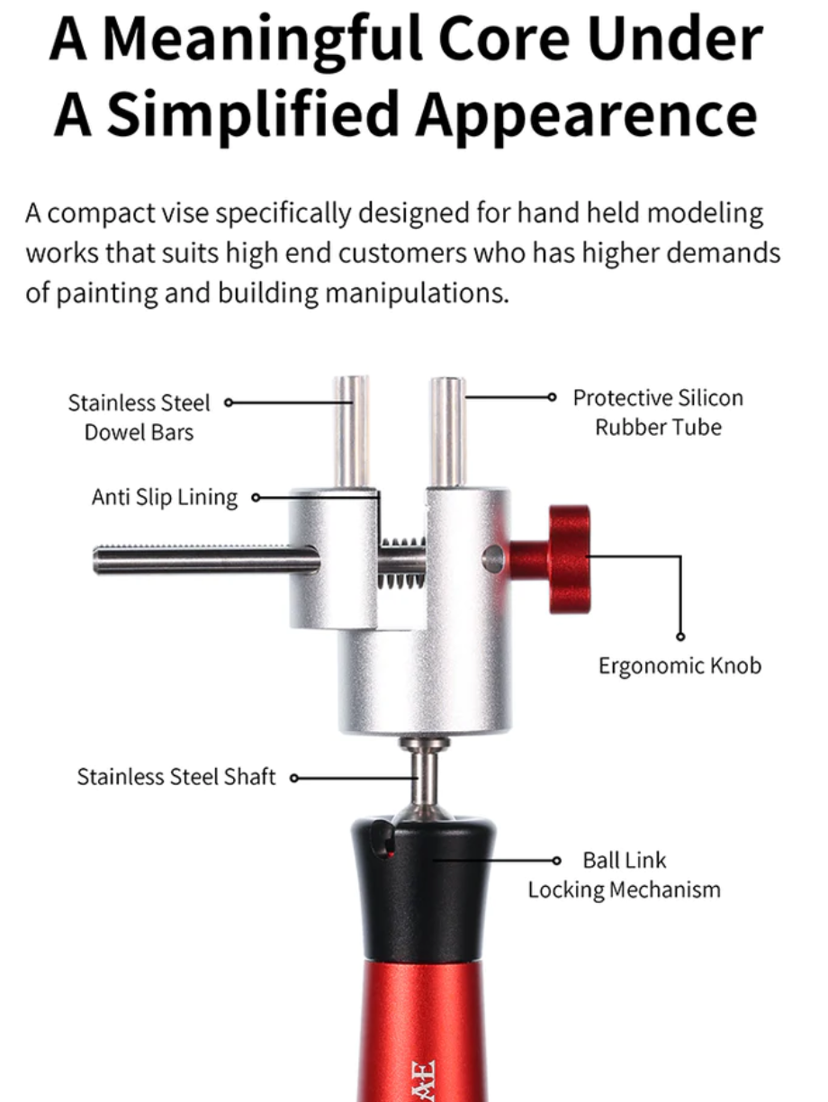 A compact vise specifically designed for hand held modeling works that suits high end customers who have higher demands of painting and building manipulations.