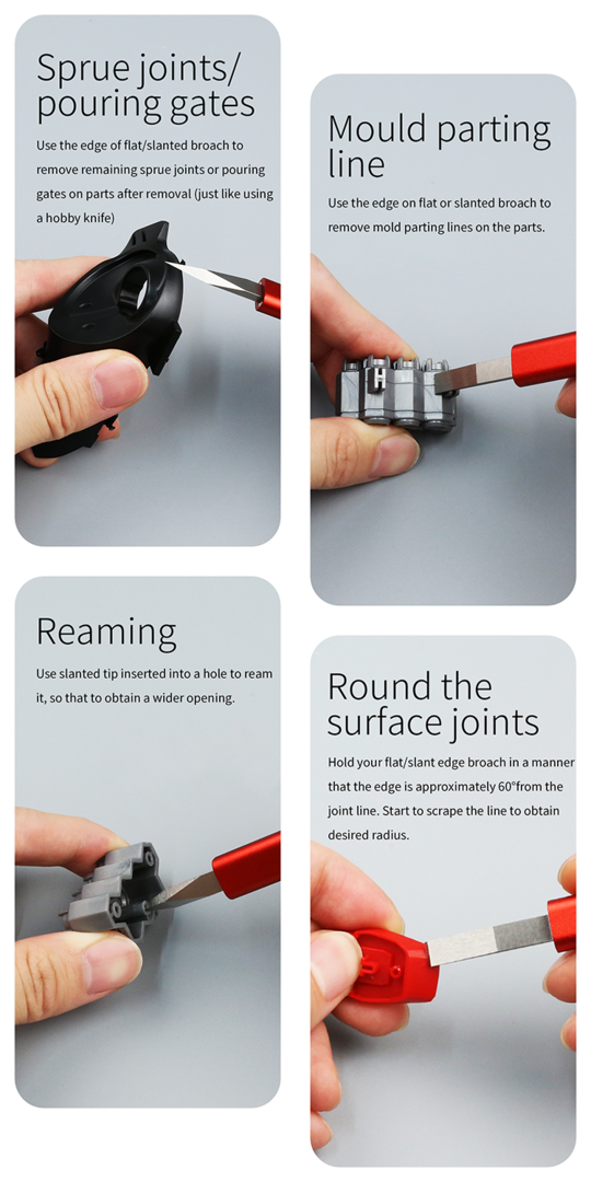 Versatile tools for scale model. Able to remove mold line / minor chamfering / also as reamer.