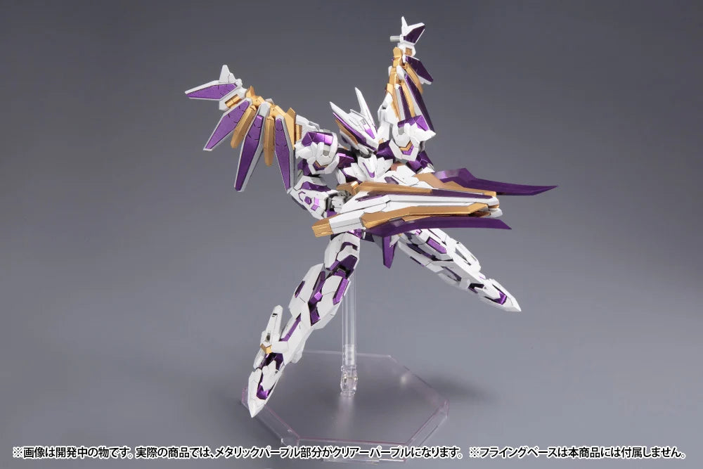 Includes its signature weapons: BS-R04 rifle x2, Beryl Sword x4, Beryl Knife x2, Beryl Dagger II x4. The BS-R04, Beryl Sword, and Beryl Knife can be attached to the back. They can also be attached to the wing parts to create a set of giant wings. The multi-color design of the model allows users to achieve a realistic finish just by assembling the kit.