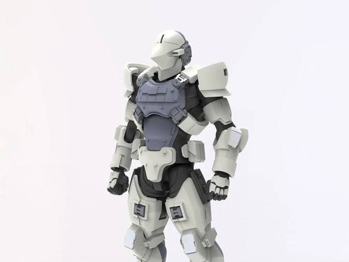 The model stands nearly 3 inches tall, features 43 points of articulation, and includes three types of heads, each with corresponding eye decals. The wrists have stable 2mm joints and the inner thighs have joints specially designed for riding HEXA GEAR, allowing for the model to become one with the HEXA GEAR while maintaining its human form.