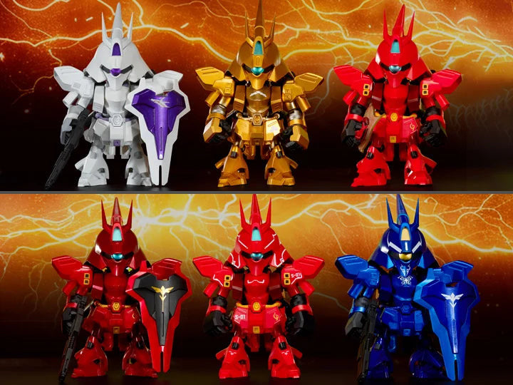 Introducing the QMSV - Cute Mobile Suit Variations series! Uniquely stylized static figures with impressive volume featuring different variations of the same mobile suit. The latest wave features Sazabi! Each figure comes in a blind box and is sure to be a great addition to any collection!