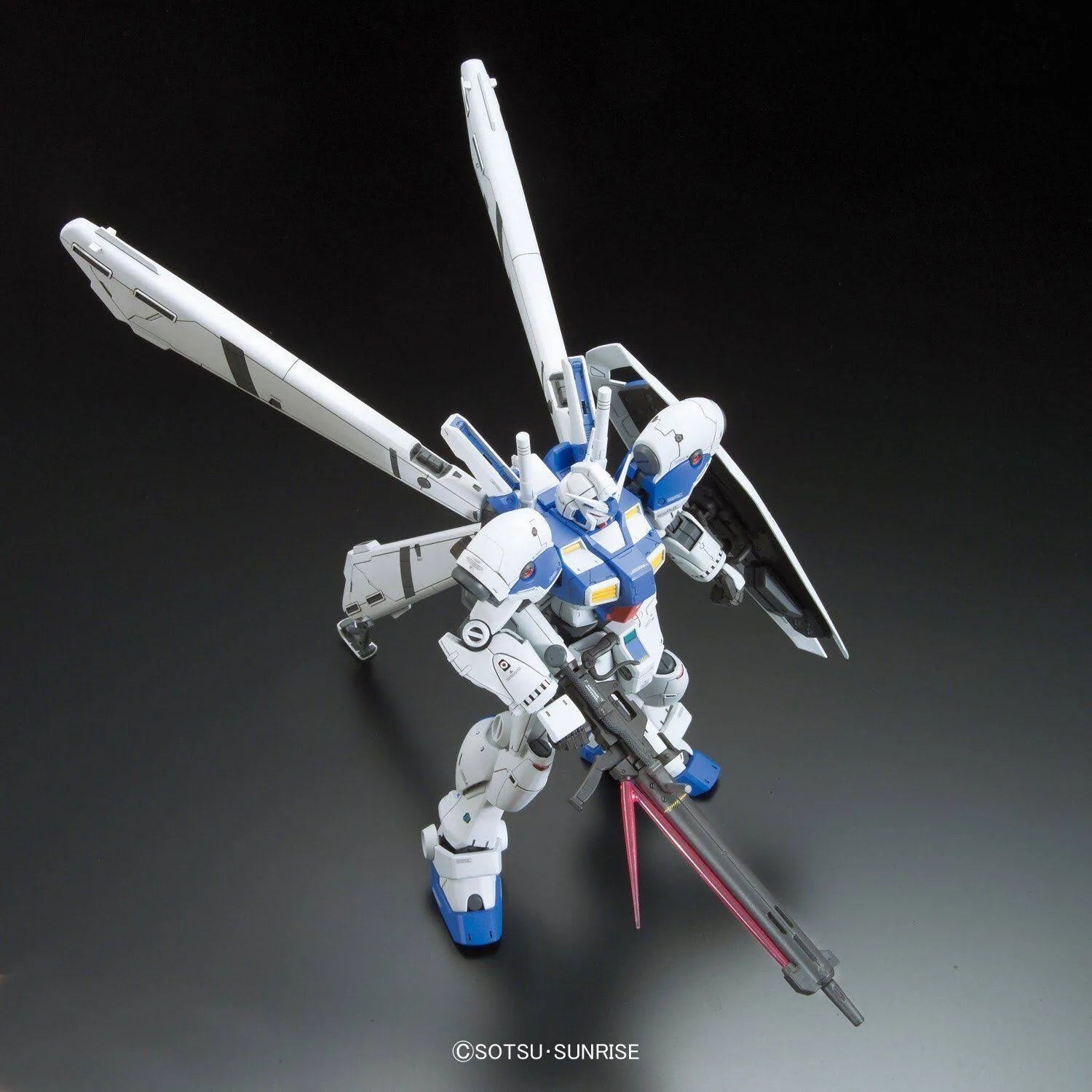 The original form of the Gerbera Tetra from the “Gundam 0083: Stardust Memory” animated mini-series. Using new artwork for the RE/100 line, the GP04 features a highly detailed exterior equal to those of the MG line and contains a highly simplified joint structure that ensures a high range of maneuverability. Iconic giant Sturm boosters can detach from main body, and bottom booster features a foldable landing skid for balance. Approx 7.5” Tall.