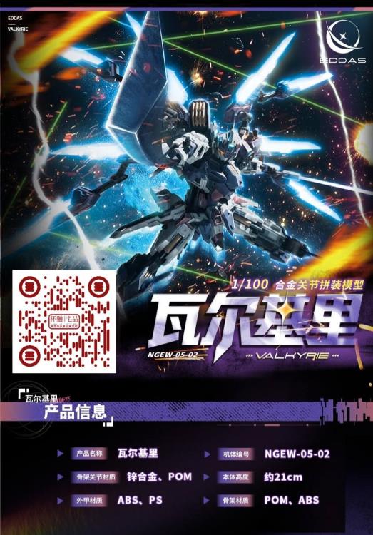 Expand your mecha collection with the Valkyrie 1/100 scale model kit by Eddas Technology! This model kit is highly articulated when fully assembled to allow for a variety of fun poses. Valkyrie also includes various parts and accessories to customize the look of your model. Don't miss out on adding this model to your mecha arsenal!