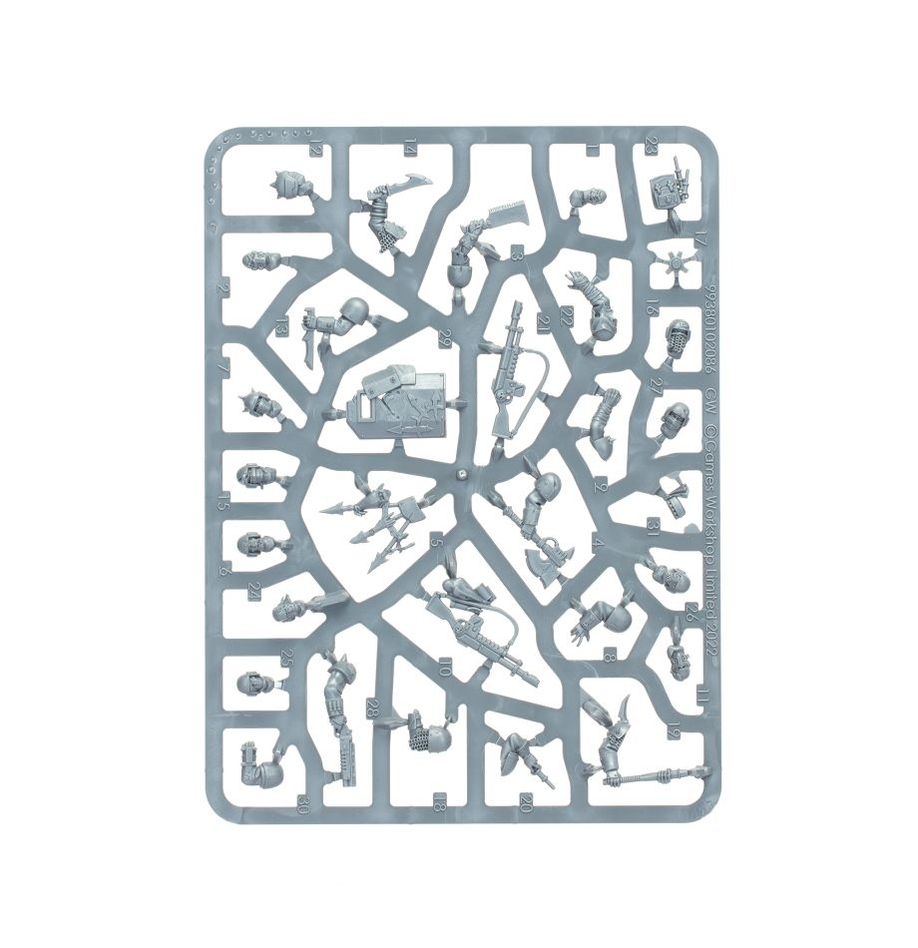 This set comprises 151 plastic components and is supplied with 10x Citadel 25mm Round Bases, 1x Citadel 32mm Round Base, and 1x Citadel 40mm Round Base. These miniatures are supplied unpainted and require assembly – we recommend using Citadel Plastic Glue and Citadel Colour paints.