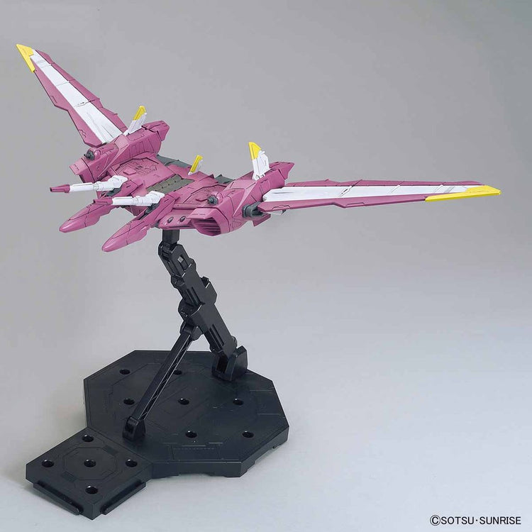 The Justice Gundam from "Gundam Seed" joins the Master Grade kit lineup from Bandai! The Fatum-00's beam cannon base can be displayed in flight form without any parts swapping, and the Fatum-00 can also be ridden by the Justice Gundam and displayed in flight! The Justice Gundam is armed with one Lupus beam rifle, two Lacerta beam sabers, one Bassel beam boomerang, and the laminated anti-beam shield. The cockpit opens and closes, and a pilot figure is included; it also comes with stickers and dry-transfer decals for markings.