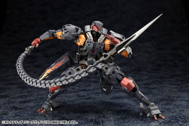 To further enhance compatibility, users can attach the chain blade base and tip to the main body to recreate the iconic armament used by the Governor BISHOP. Additionally, HEXA GEAR grip parts allow the CREEP VENOM to be wielded as a handheld weapon by other humanoid units in the series.