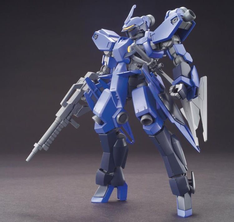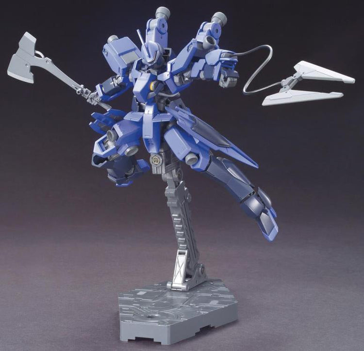 One of the units used by Gjallarhorn to defend Earth in animated TV series Gundam Iron-Blooded Orphans. It features different armaments that can be interchanged with other HG kits and also includes 2 head designs to choose between regular and captain unit, as well as opening head gimmick. Weapons on this version include battle axe and rifle. Runner x 6, sticker x 1, Instruction Manual x1