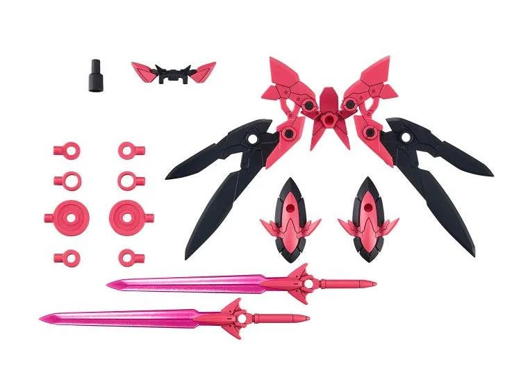 The design of Tiersha, who appeared in the second 30MS release, has been completely redesigned! The face parts come with three different expressions created using tampo printing. The wing parts can be attached to the waist as well as the back. The rapier handle and gauntlet can be attached to any location using 3mm joints.