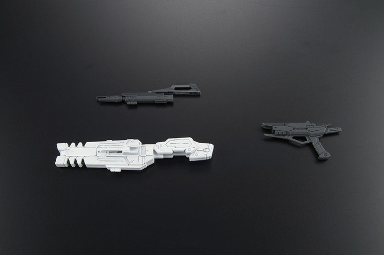 Enter RG # 23, Build Strike Gundam Full Package carries Build Booster, Beam Rifle, Beam Gun (can be combined with beam rifle), 2 beam sabers and 1 shield. Several different hand parts are also included to hold a variety of weapons.