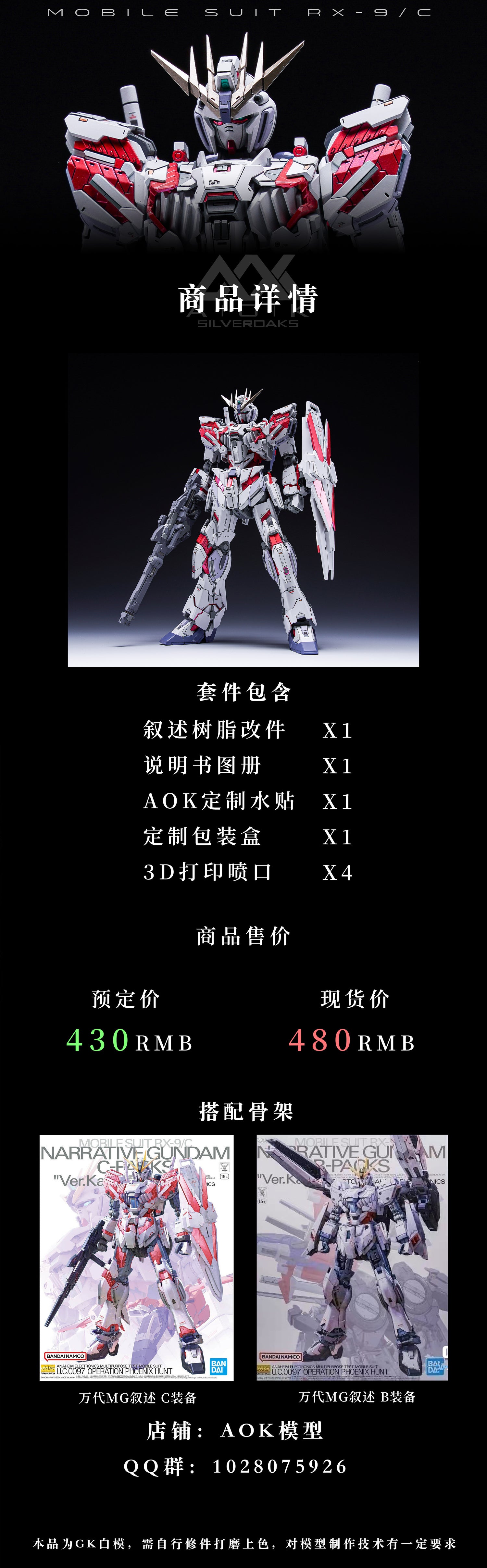 AOK Model 1/100 Mobile Suit RX-9/C Gundam NT Narrative Garage Kit Resin Conversion Kit (Pre-Order)
