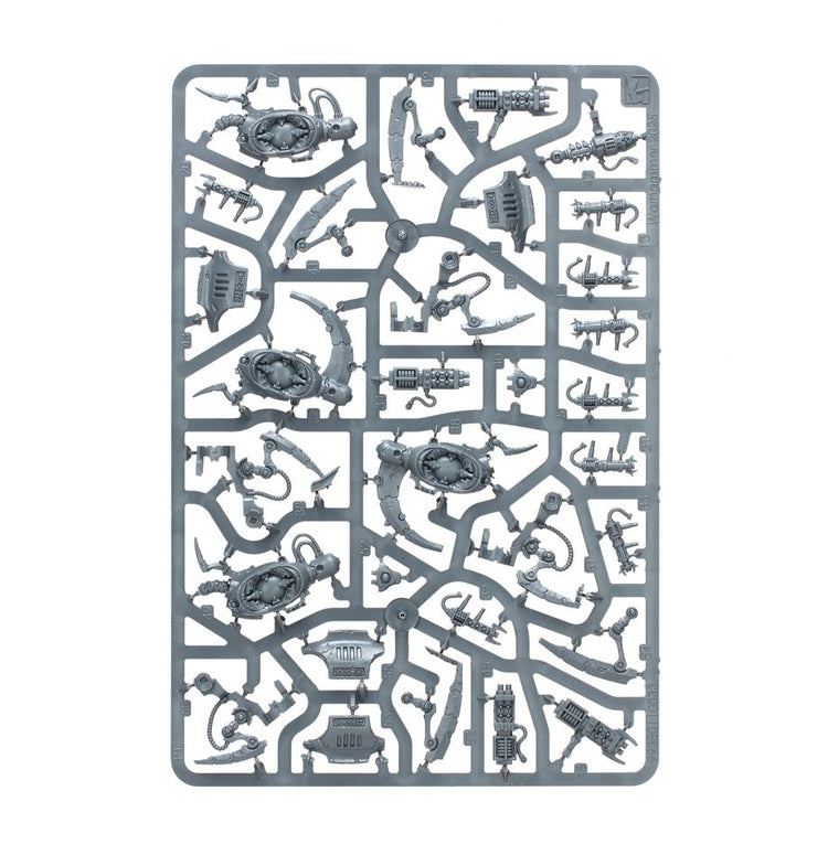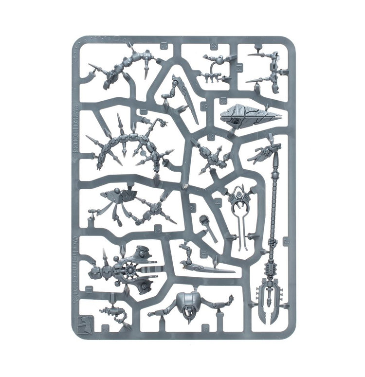This multipart plastic kit builds eight Canoptek Circle miniatures. These miniatures can be used as relentless Canoptek Circle operatives in games of Kill Team, or fielded in a Necron army in games of Warhammer 40,000. The kit builds one Geomancer, two Tomb Crawlers, and five Macrocyte Warriors. A choice of weapon options is included in the kit to customise your Tomb Crawlers and Macrocyte Warriors, plus components to build specialists like the empowering Macrocyte Accelerator and repairing Macrocyte Reanimator.