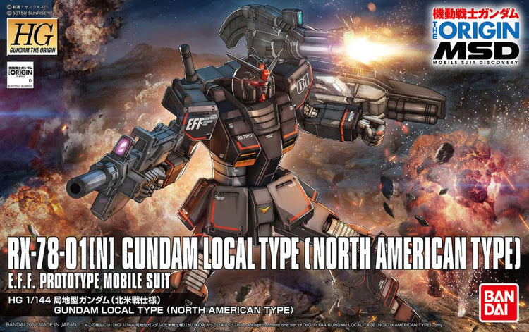The Gundam Local Type (North American) joins the 1/144 scale High Grade model kit series! Fully articulated once completed, this kit will make a great addition to any Gundam collection!