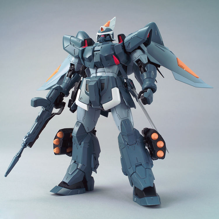 Cosmic Era's mass-produced Mobile Ginn from "Mobile Suit Gundam Seed' is now available as an MG model kit from Bandai! It features the MG series' internal frame configuration, and the mechanical design of its characteristic backpack is impossible to miss. The backpack moves up and down, and also swings backward for a wide range of movement; the heavy sword is newly designed, and the handle of the triple short-range guided missile launcher pod can be pulled out. Four magazines and one magazine rack are also included; one magazine can be attached to the rifle, and the remaining three can be attached to the rack. Get yours today!