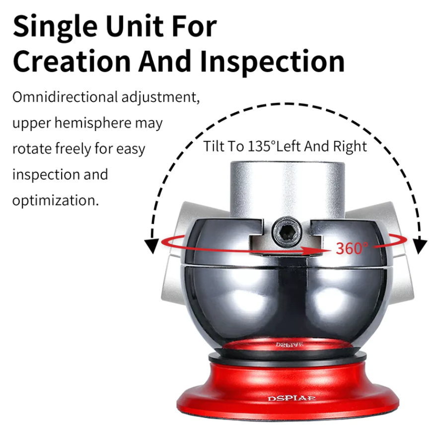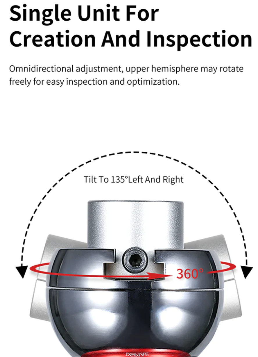 - Omnidirectional adjustment, upper hemisphere may rotate freely for easy inspection and optimization.
