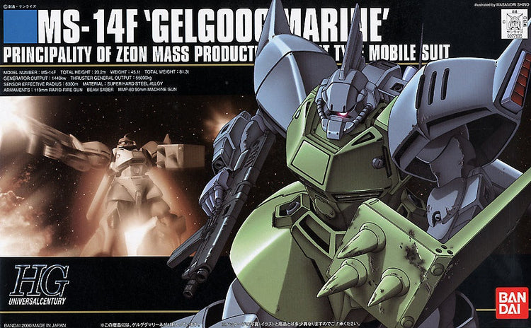 Based on the Mobile Suit Gundam 0083: Stardust Memory anime, this MS-14F Gelgoog Marine model kit is in the 1/144 scale and becomes a fully articulated figure once built. Accessories include a beam rifle, machine gun, beam sabre and shield.